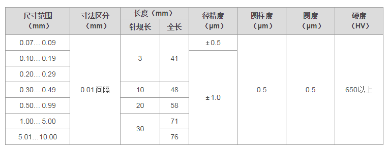 產(chǎn)品特性:使用耐久性素材,有一定的尺寸公差,通過精密加工而達(dá)到所定尺寸的針狀規(guī)。