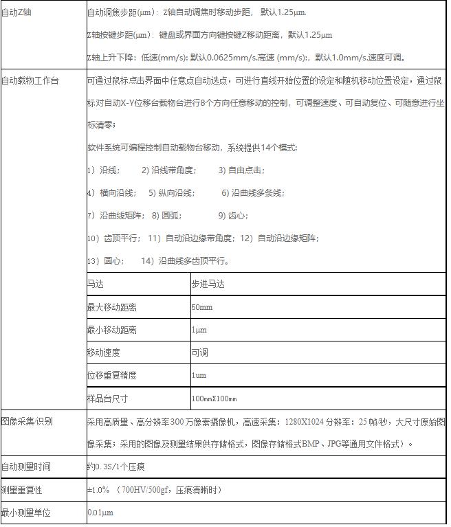 全自動顯微維氏硬度計,集成了光學(xué)成像、機械位移、電子控制、數(shù)字成像、圖像分析、計算機處理等多種專業(yè)技術(shù),通過計算機主機實現(xiàn)對維氏硬度計和自動載物臺的控制,并將硬度壓痕數(shù)字化成像在計算機屏幕上,再通過自動讀數(shù)、手動讀數(shù)等手段,準(zhǔn)確測量金屬及部分非金屬材料及各種膜層、鍍層的顯微硬度、硬化層深度、膜層厚度、兩點間距等。還可拍攝金屬表面形貌并進(jìn)行固定倍率打印等。這一系統(tǒng),突破了傳統(tǒng)硬度的測試方式,實現(xiàn)了全自動、高精度、高重復(fù)性的硬度測試,是材料分析的重要設(shè)備。